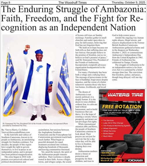 “We hold on to hope because our faith tells us that suffering does not last forever. Our people believe in the promise of freedom, just as we believe in God’s promise of peace,” said Dr. Emmanuel Tita, President of the Friends of Ambazonia, Incorporated-a nonprofit advocacy organization headquartered in the United States.